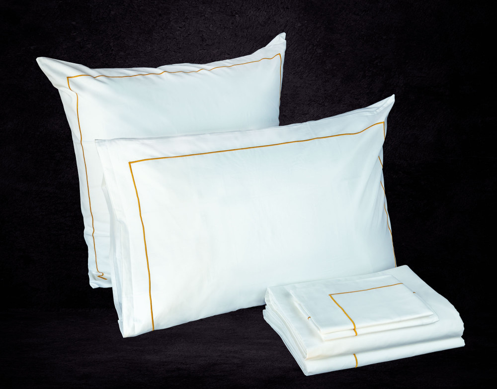 La collection Versailles se reconnaît par son délicat bourdon cuivré au revers, une signature élégante qui apporte une finition soignée et une allure subtilement sophistiquée à votre lit.