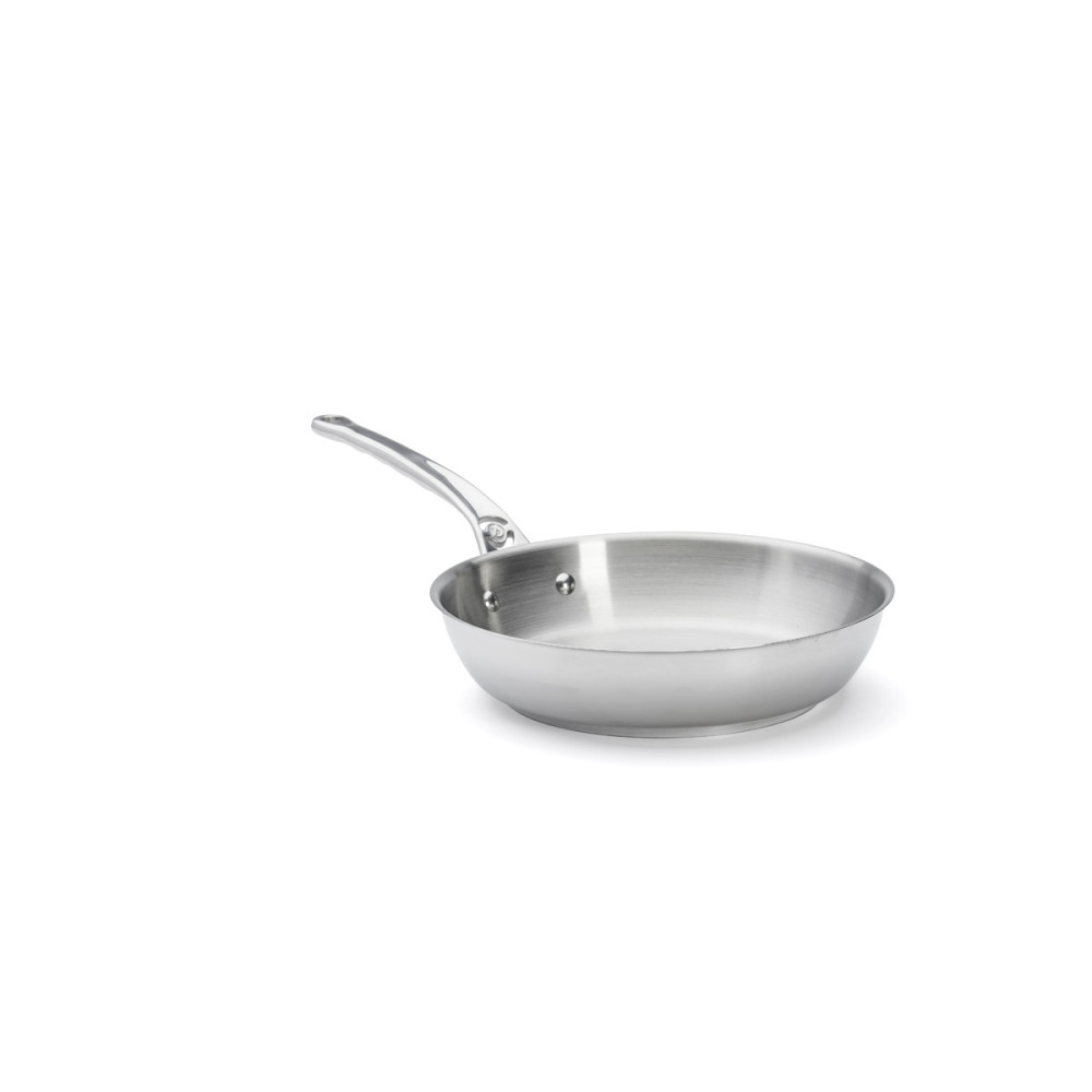 La queue en fonte d’inox rivetée est ergonomique et confortable, avec une cambrure étudiée pour éloigner la main de la source de chaleur tout en assurant une prise sûre et équilibrée pendant la cuisson. Sa finition polie miroir haut de gamme apporte une touche professionnelle et élégante à votre batterie de cuisine.