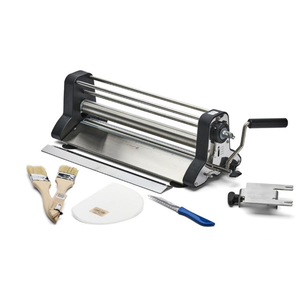 Compact, léger et simple à installer, le laminoir Multipâte PRO trouve facilement sa place dans toutes les cuisines. Sa large surface de laminage et sa longueur de pâte illimitée permettent de travailler confortablement, même sur de grandes quantités. La molette intuitive propose 20 niveaux d’épaisseur, de 15 mm à 0,3 mm, pour s’adapter à toutes vos recettes, des plus rustiques aux plus fines.
